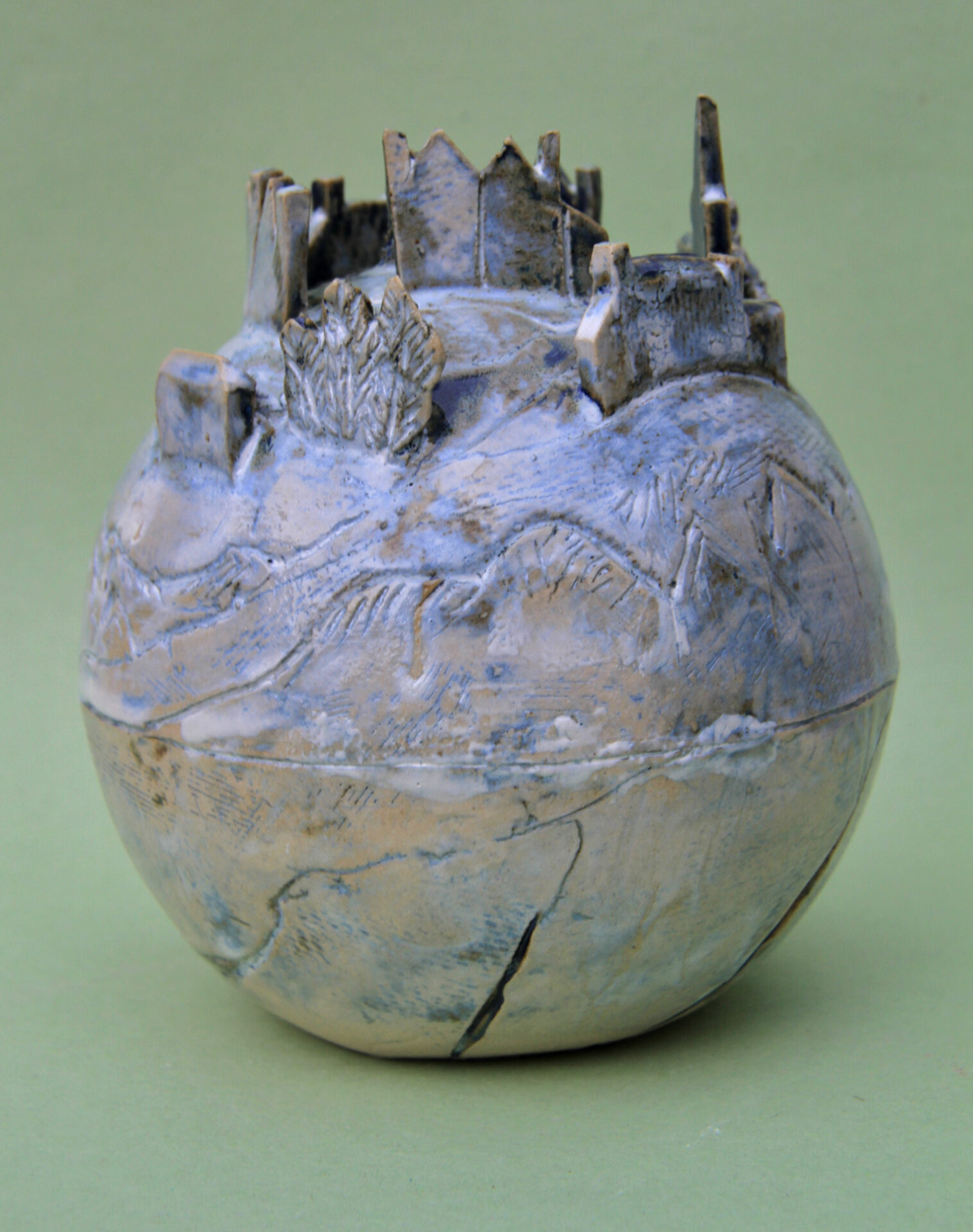 ≈ Comments Off on CS14 Sphere with surface detail of landscapes and cluster of building silhouettes on top ( blue greys) 1